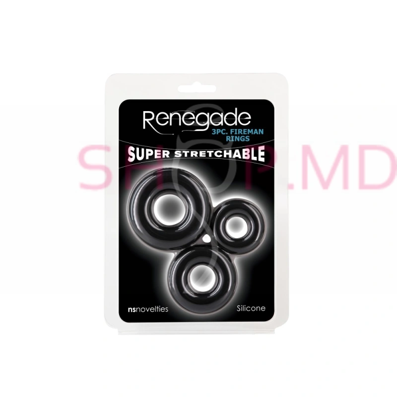 Renegade - 3pc Fireman Rings - Black este un produs destinat plăcerii și performanței superioare. Aceste inele, fabricate din silicon lichid extrem de moale, oferă o potrivire confortabilă și sigură.