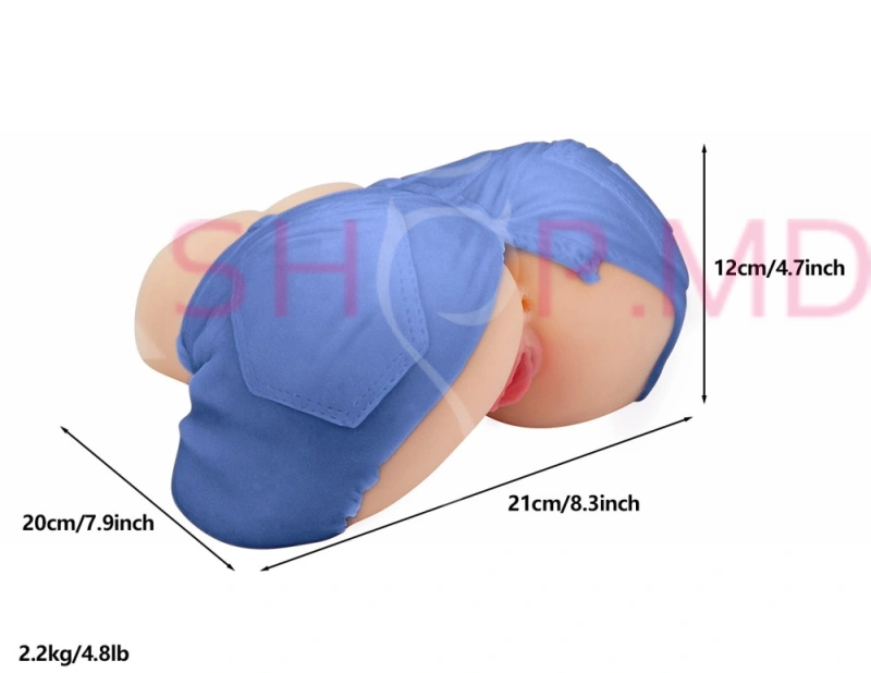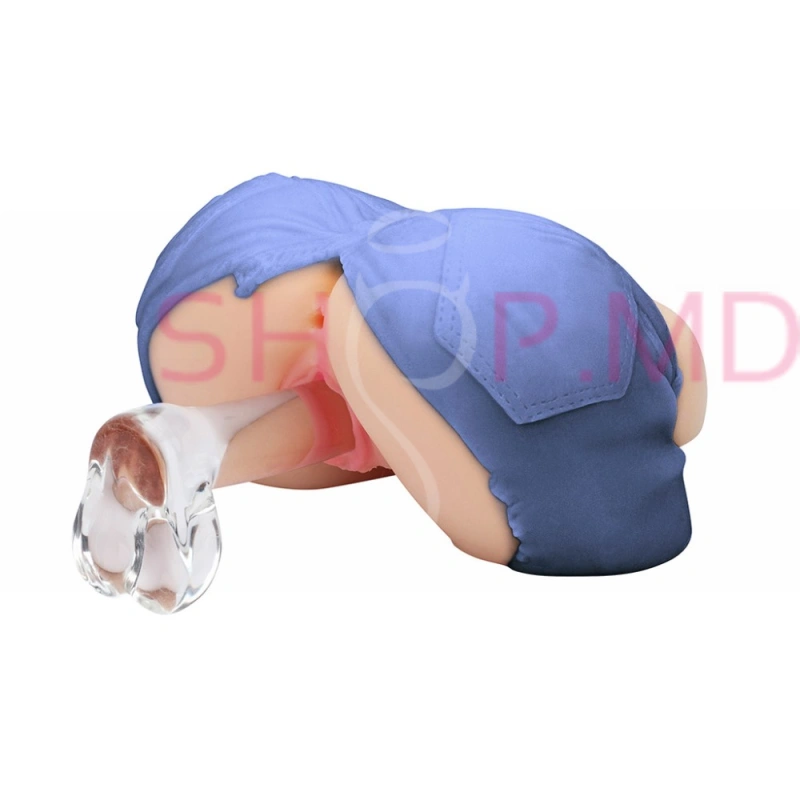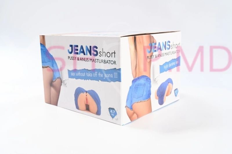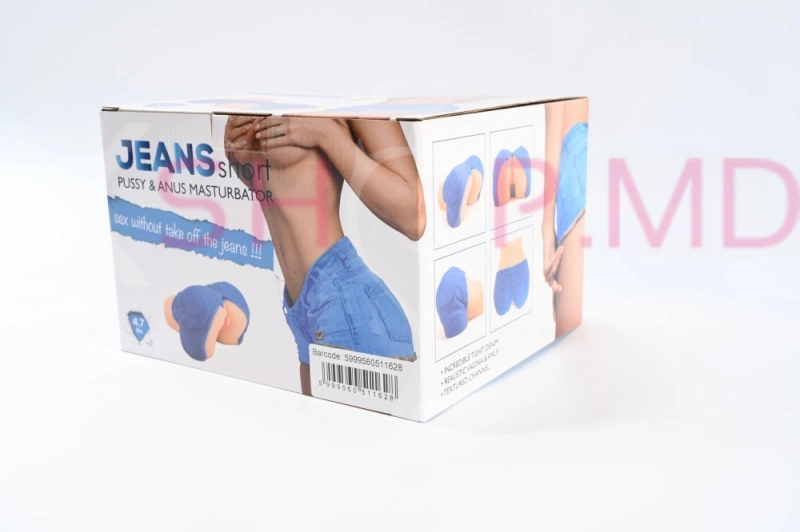 - Дизайн: оформлен в виде голубых джинсовых шортов с анатомически верными отверстиями в форме вагины и ануса